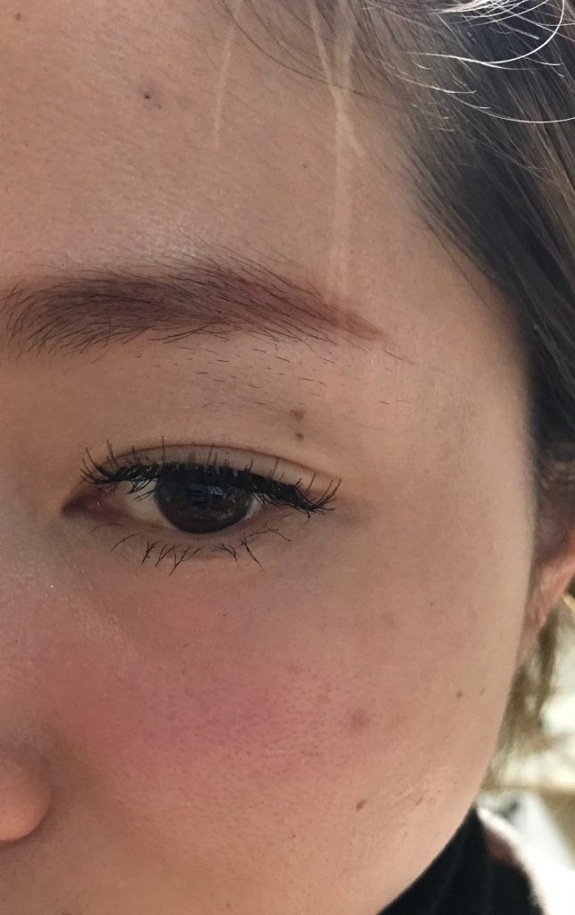 実際の目幅よりまつげの幅のが大きいので根元が浮いた状態ですね。
