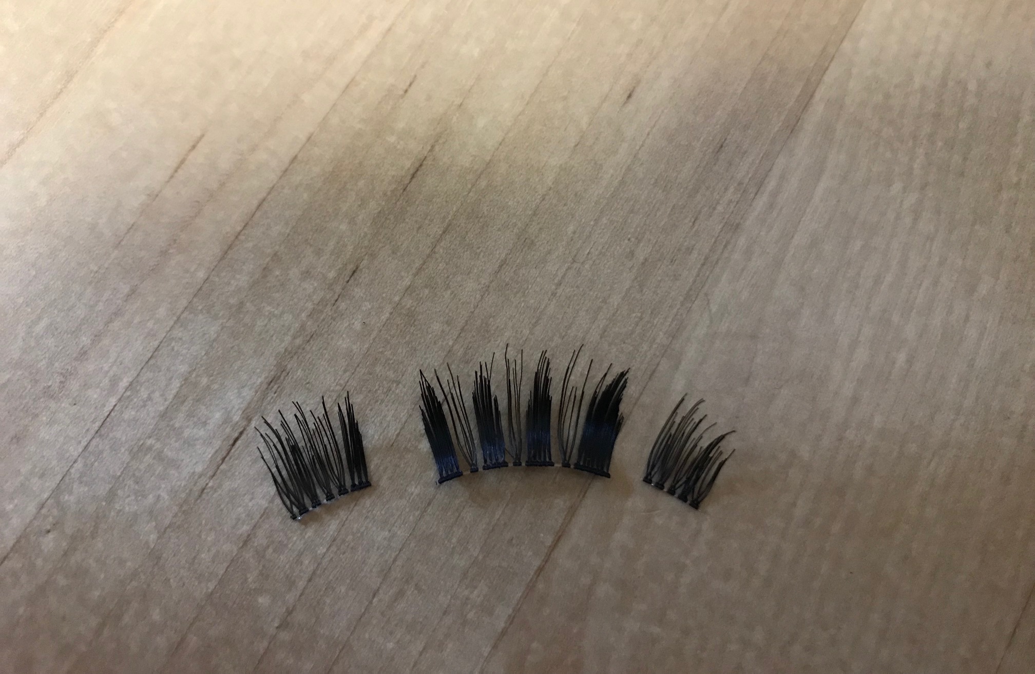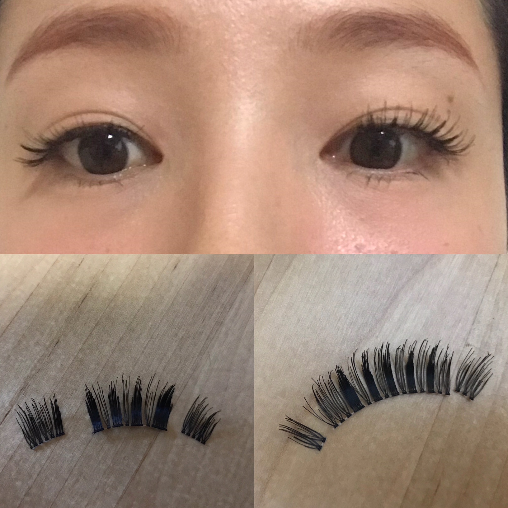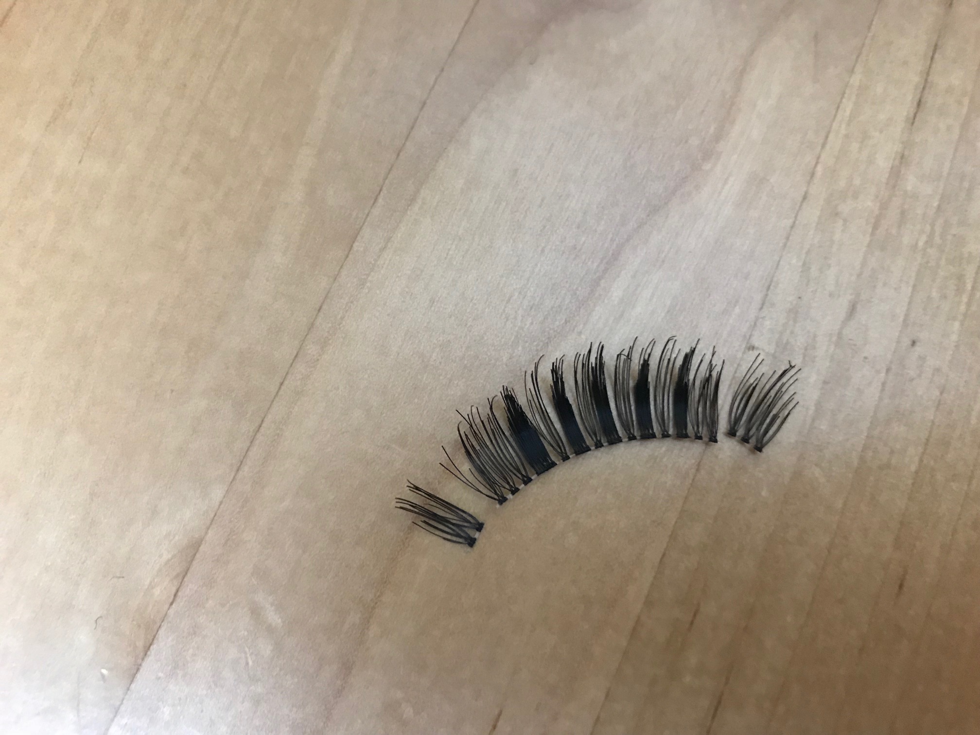 3つにパーツを分けて使うとつけまつげ本来の長さやボリュームを生かすことができます。つける手間はあるけれど一度つけたら取れる心配も少ないのがこのつけ方の良いところ。(過去に海で一日遊んでもとれなかった経験有り)