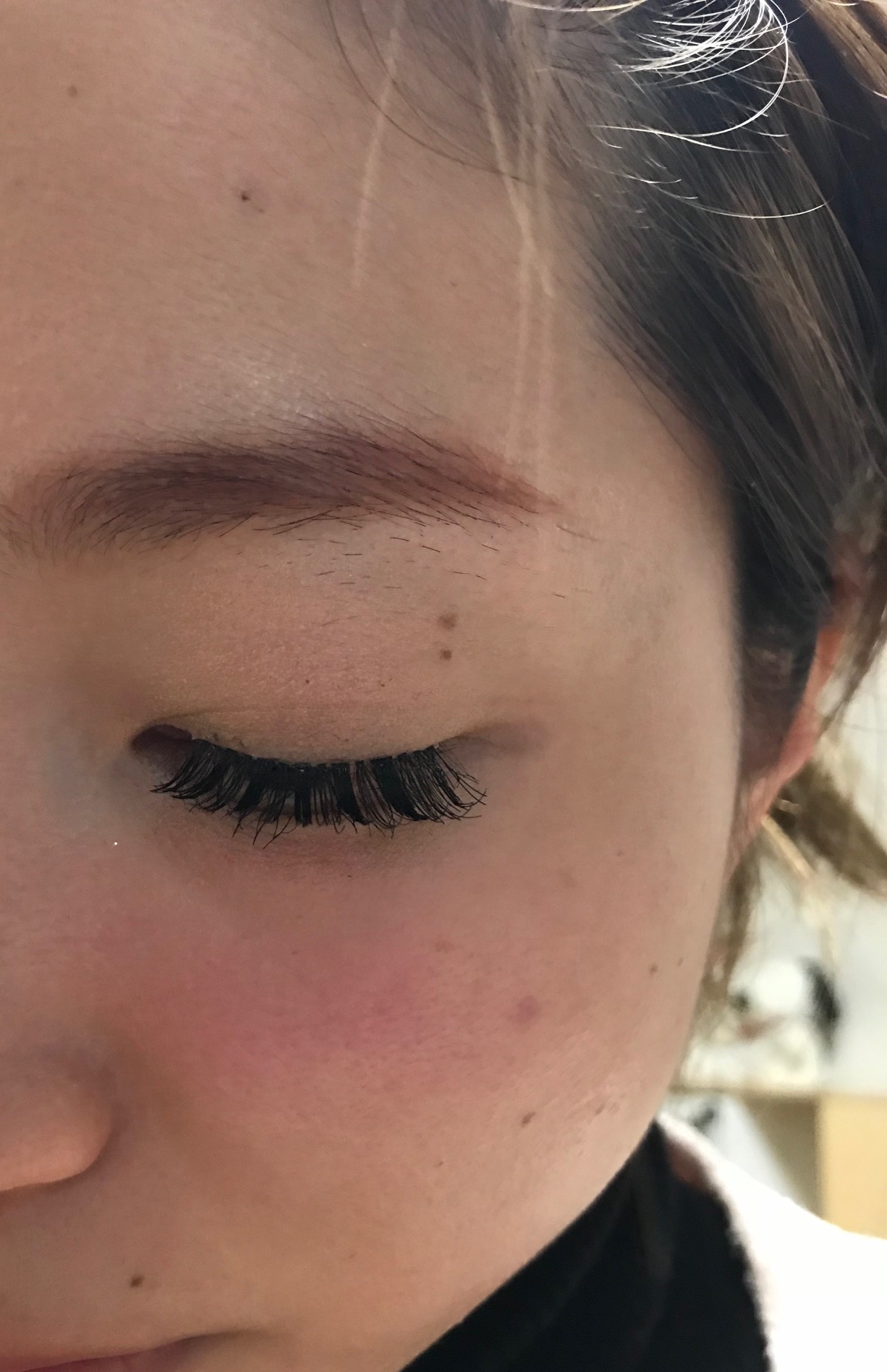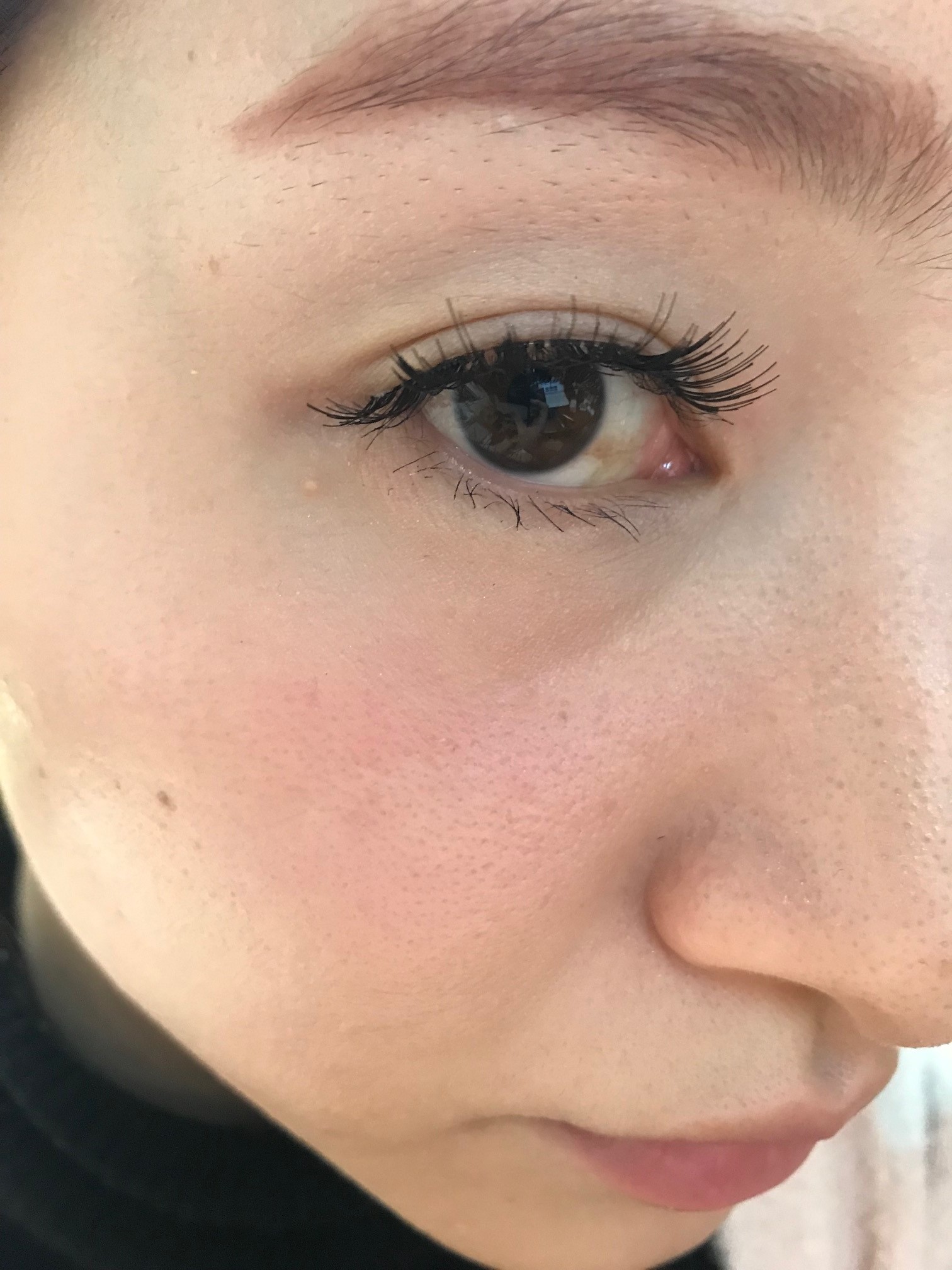 実際の目幅よりまつげの幅のが大きいので根元が浮いた状態ですね。