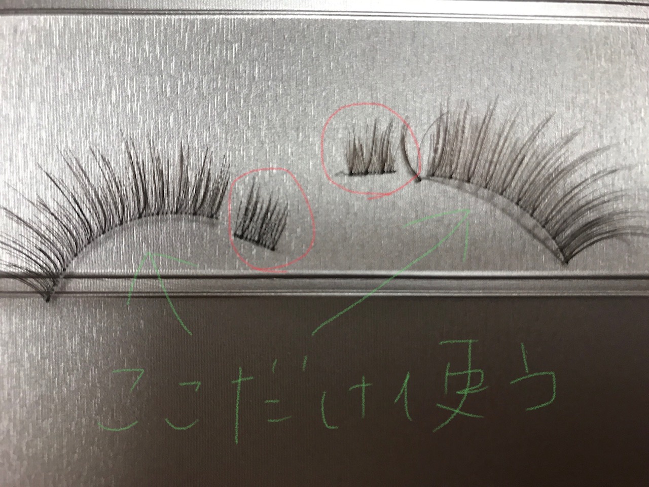 こうやって比較すると同じつけまつげなのに仕上がり方がちょっと違うんですよね。
