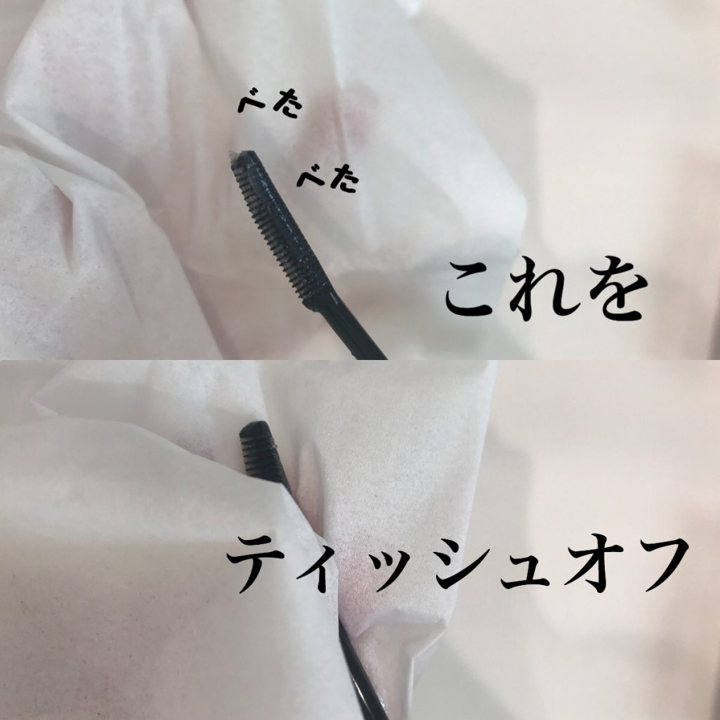 さらに、マスカラ下地の効果をしっかり出したい時に必要なのが、事前のティッシュオフです。