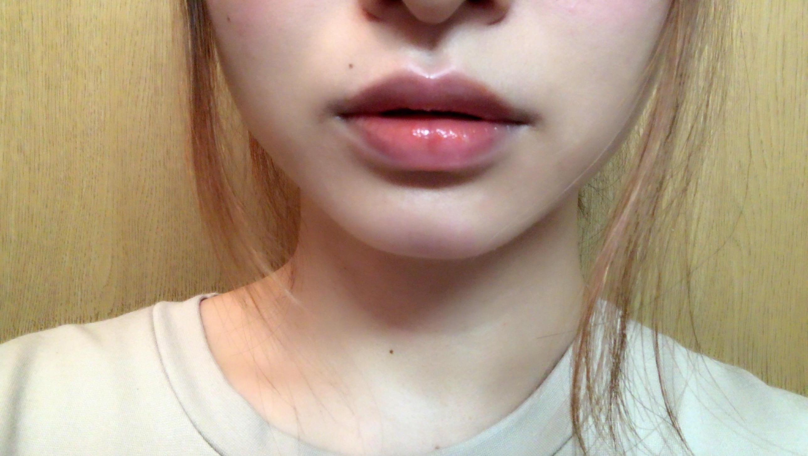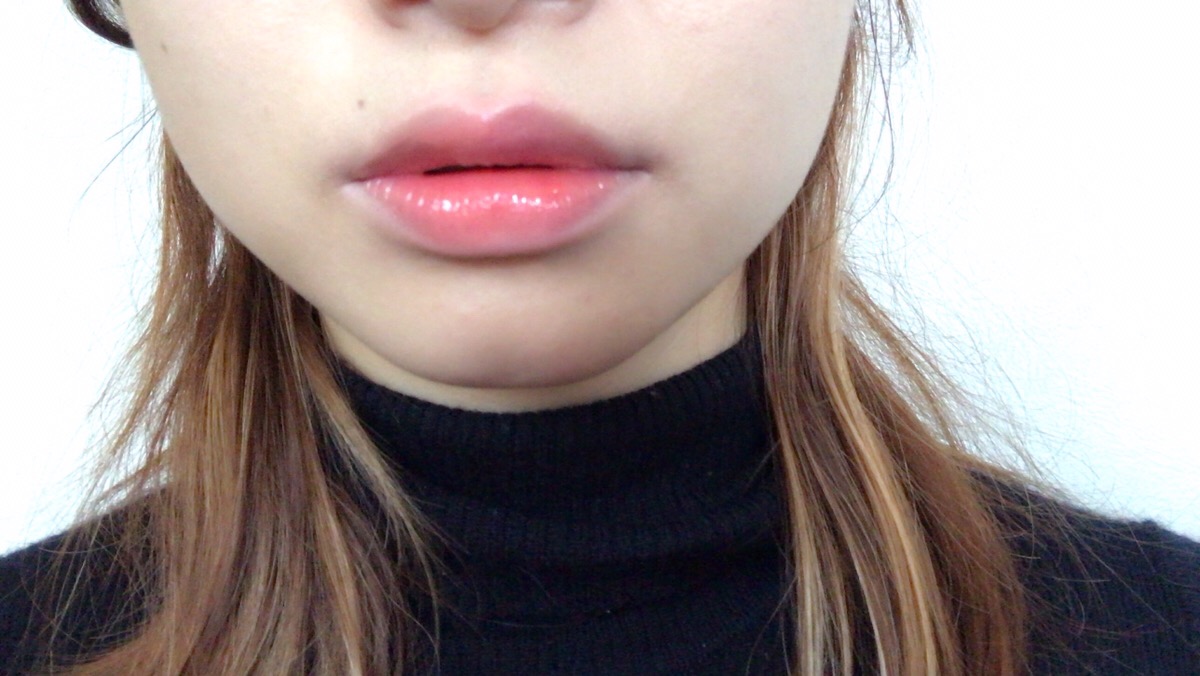 (でもこれは一応口角部分のくすみをコンシーラーでオフしてからのせてます。余裕があれば、このひと手間は大事です。)