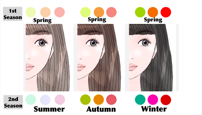 1stシーズンが春の人であっても、2ndシーズンが夏の人と冬の人ではその人の持つ雰囲気そのものも最初から違いますし、似合う配色方法も全く異なります。