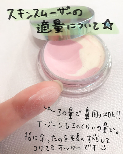 スキンスムーザーは肌にすり込むイメージでクルクルっとしてつけます。量は思っている以上に少量でOK。