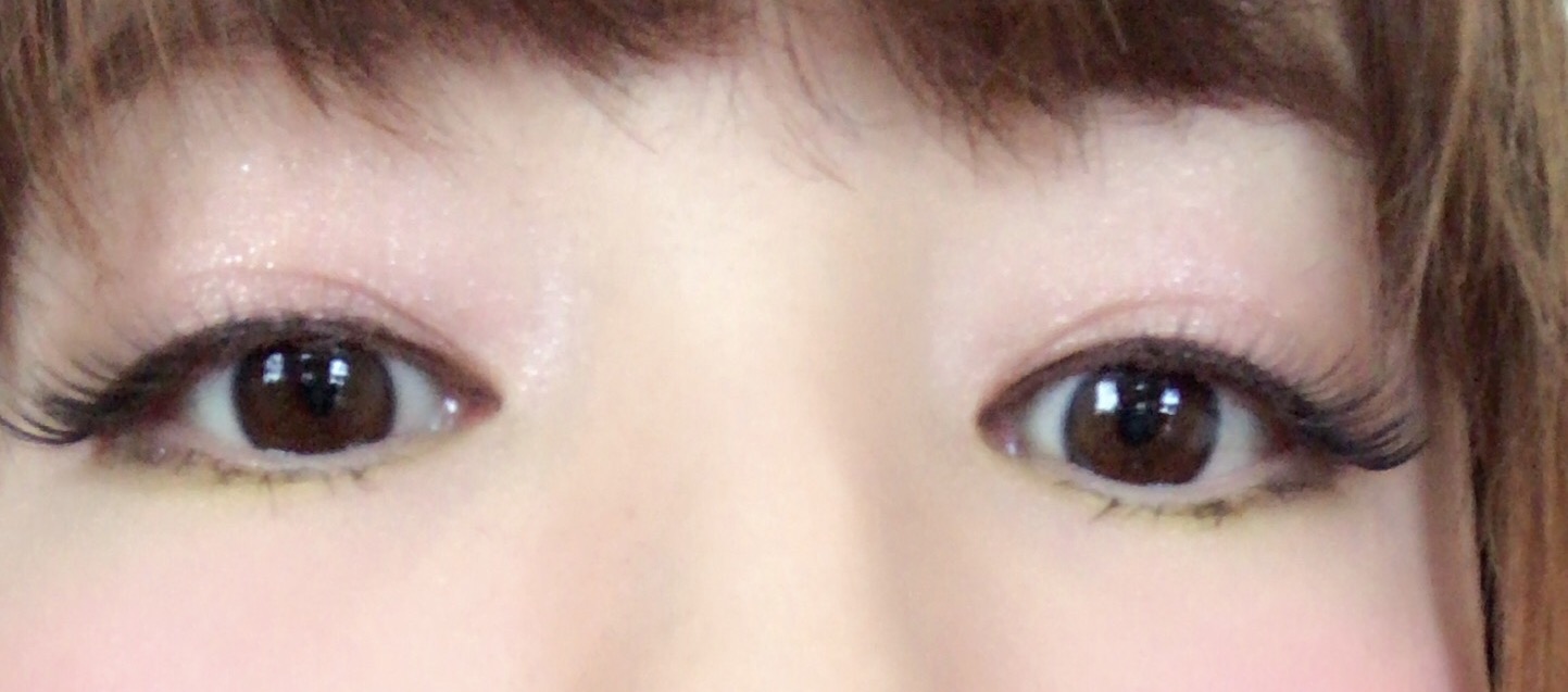 どちらも下まぶたにのみ柑橘カラーを入れてます。春だからピンクのチークやリップと合わせて…☆