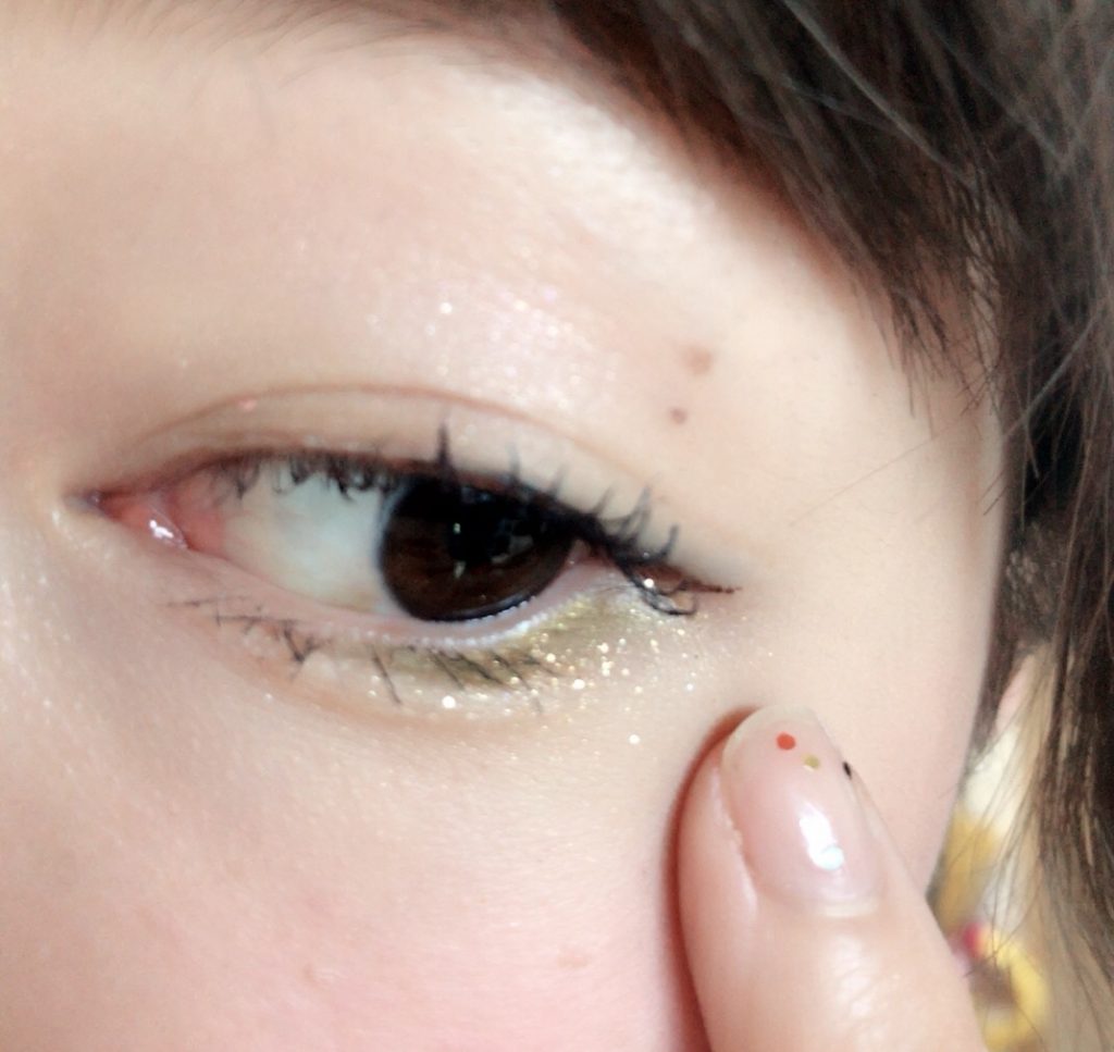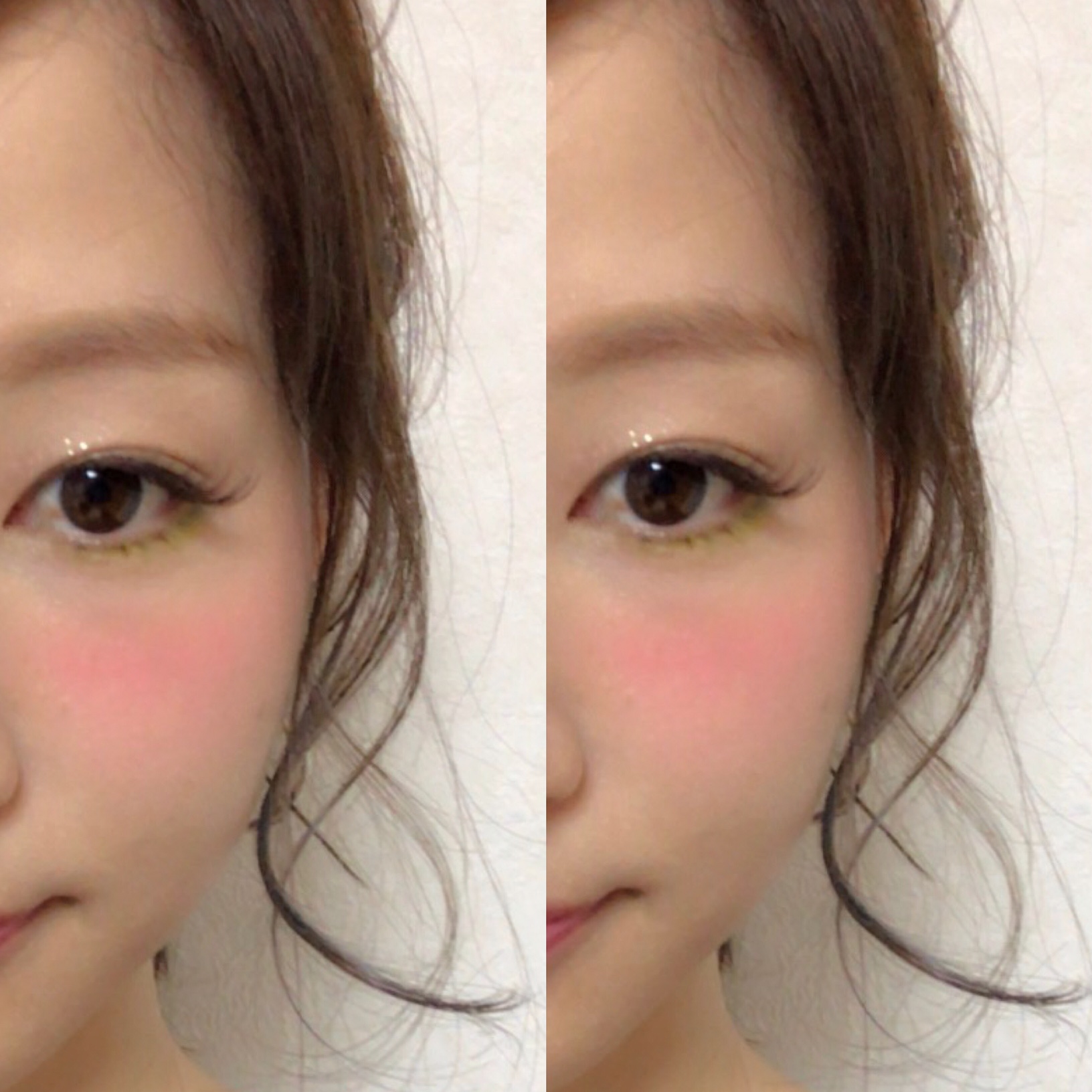 カラーシャドウですが、黄色系なので目の下に滲んでも変に見えないのも嬉しいところ。