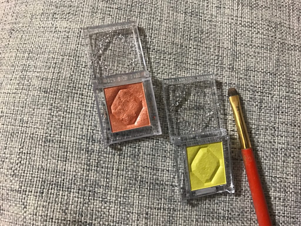 オレンジや薄い黄色系のプチプラアイシャドウで代用して☆夏メイク☆を取り入れるのも真夏の太陽に映えるメイクとしてはおススメです☆