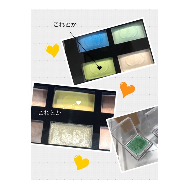 今回私が使用しているのはナーズのアイシャドウですが、色モノなのでプチプラ系のブランドでTRYするのでも良いと思います☆(でも似た色探してみたけどプチプラでは見つからず…。青味のある発色の良いイエローでグリーンの要素もある不思議な色なので、プチプラで表現するならイエローシャドウとグリーンをブレンドするといいかな。。)←めんどくさすぎてだれもしないかな 笑