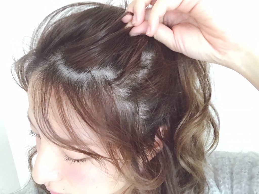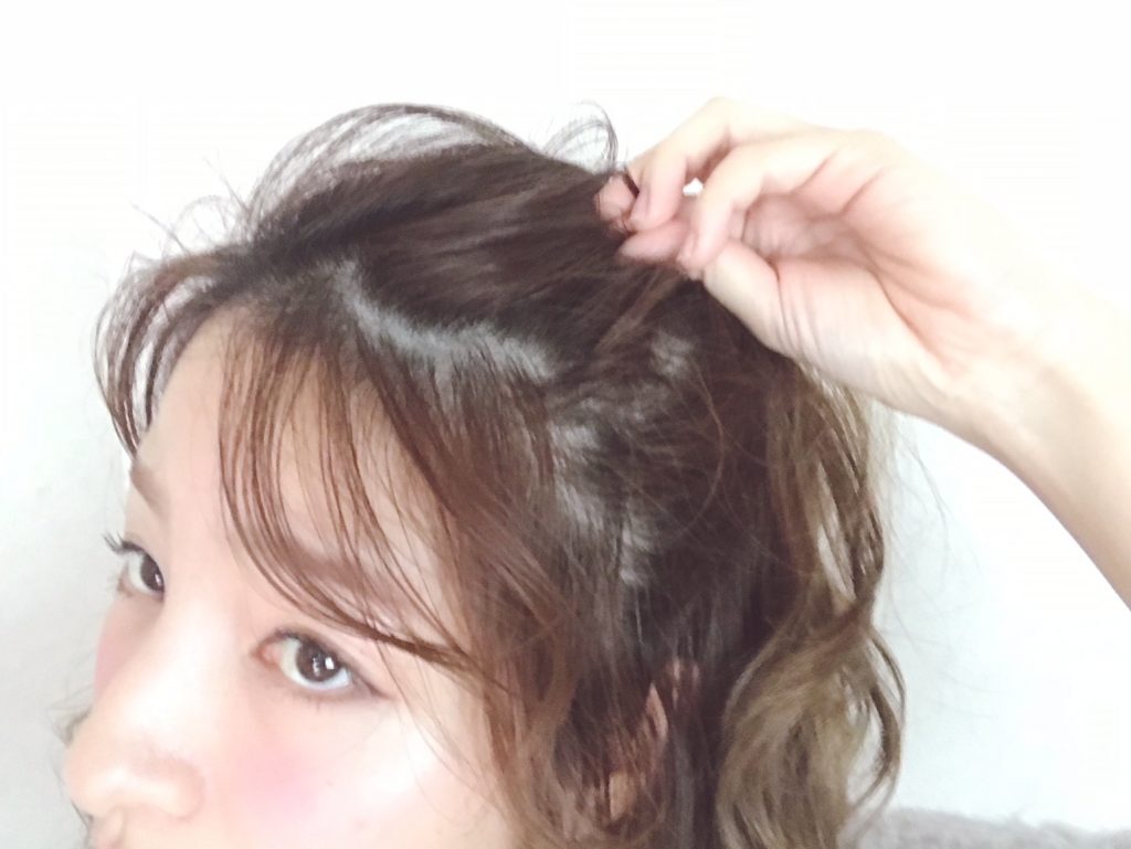 ②ワックスを前髪~全体にしっかりもみこみハーフアップをつくる
