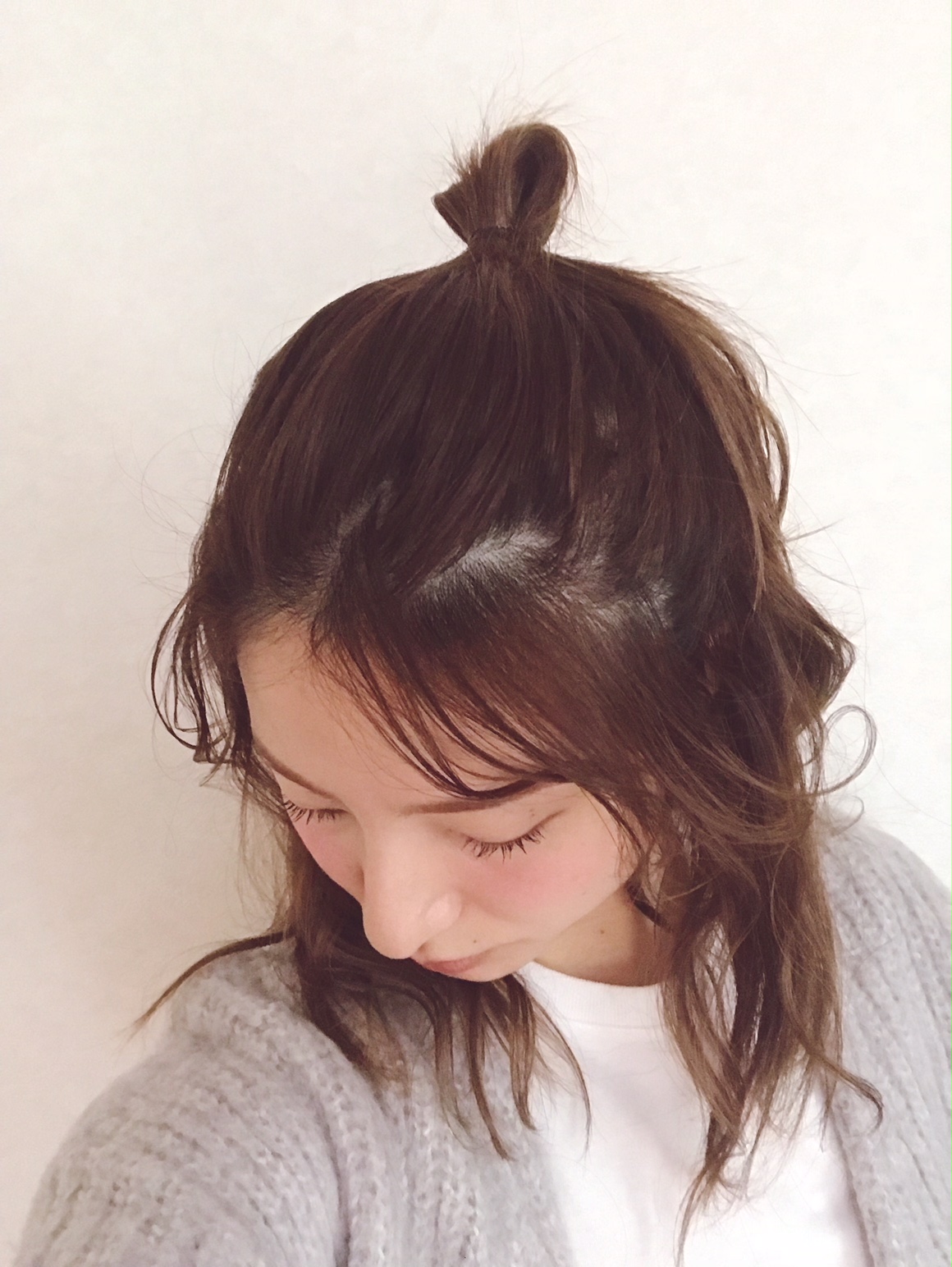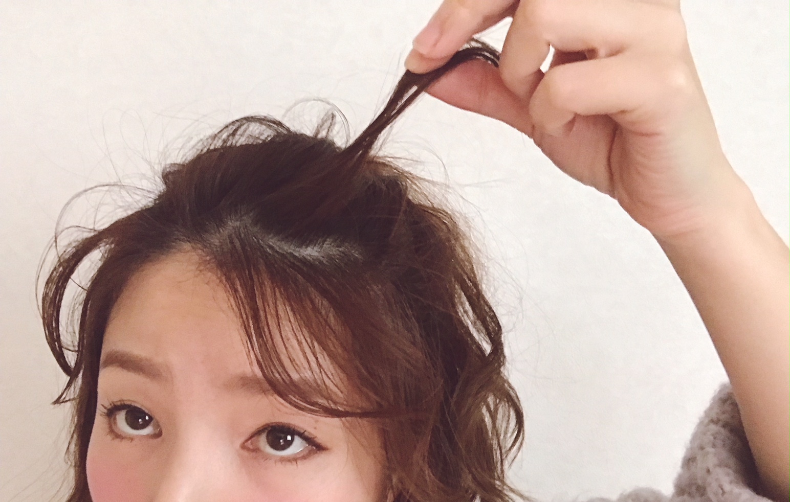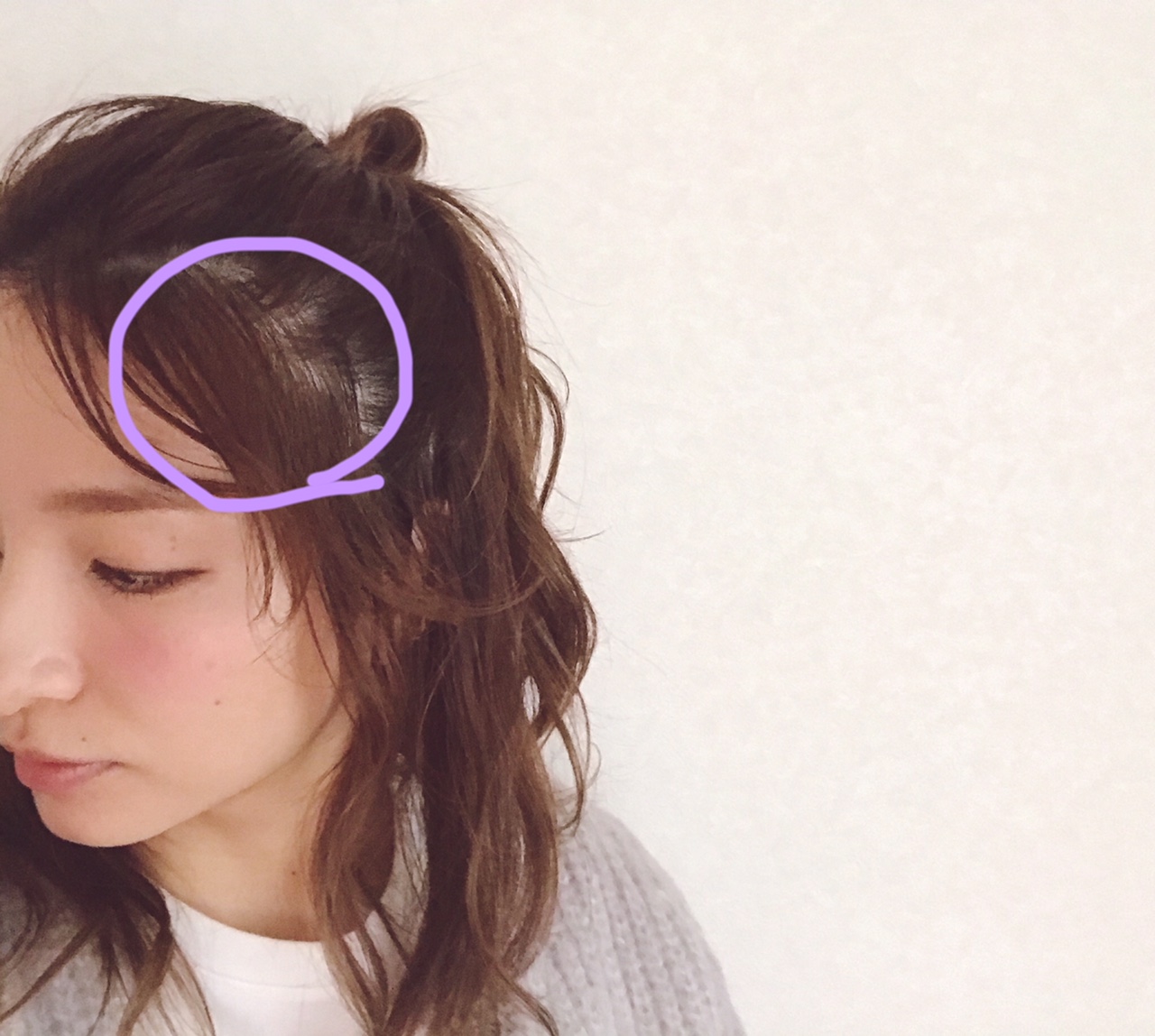 ちょろっと出る前髪で小顔効果があるアレンジです。ではプロセスへ→