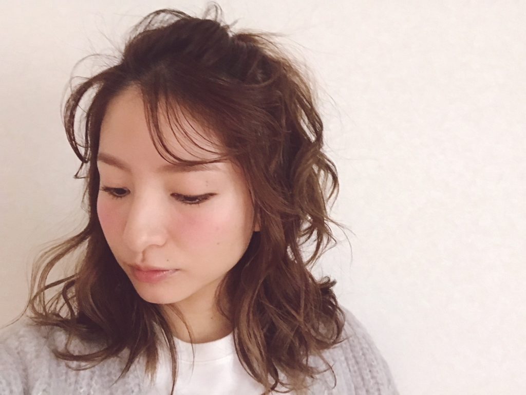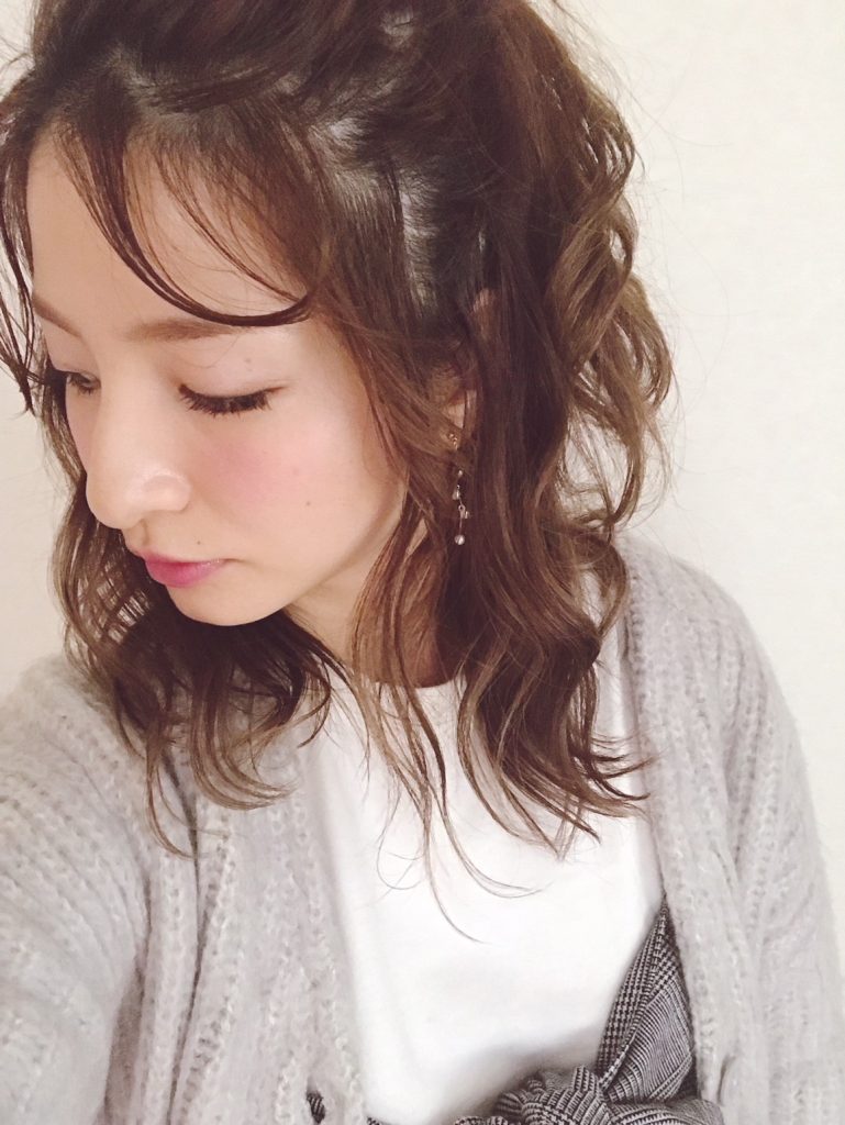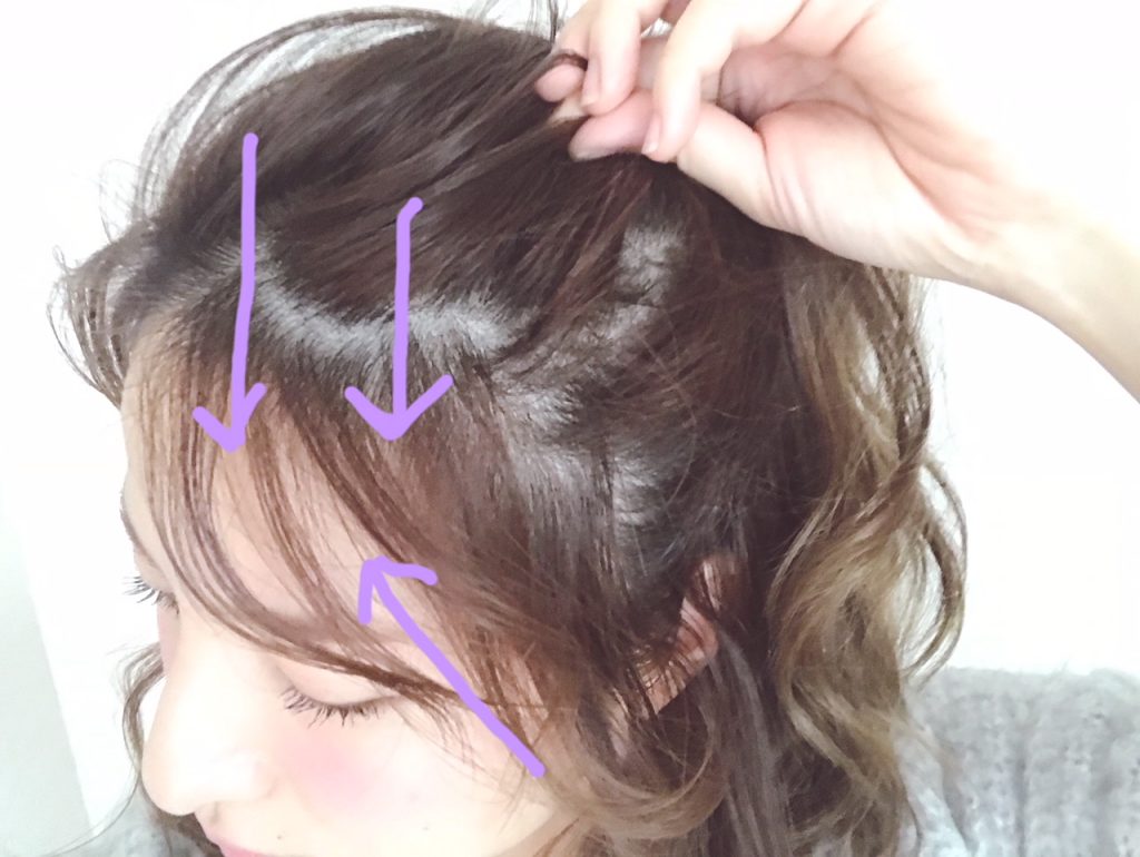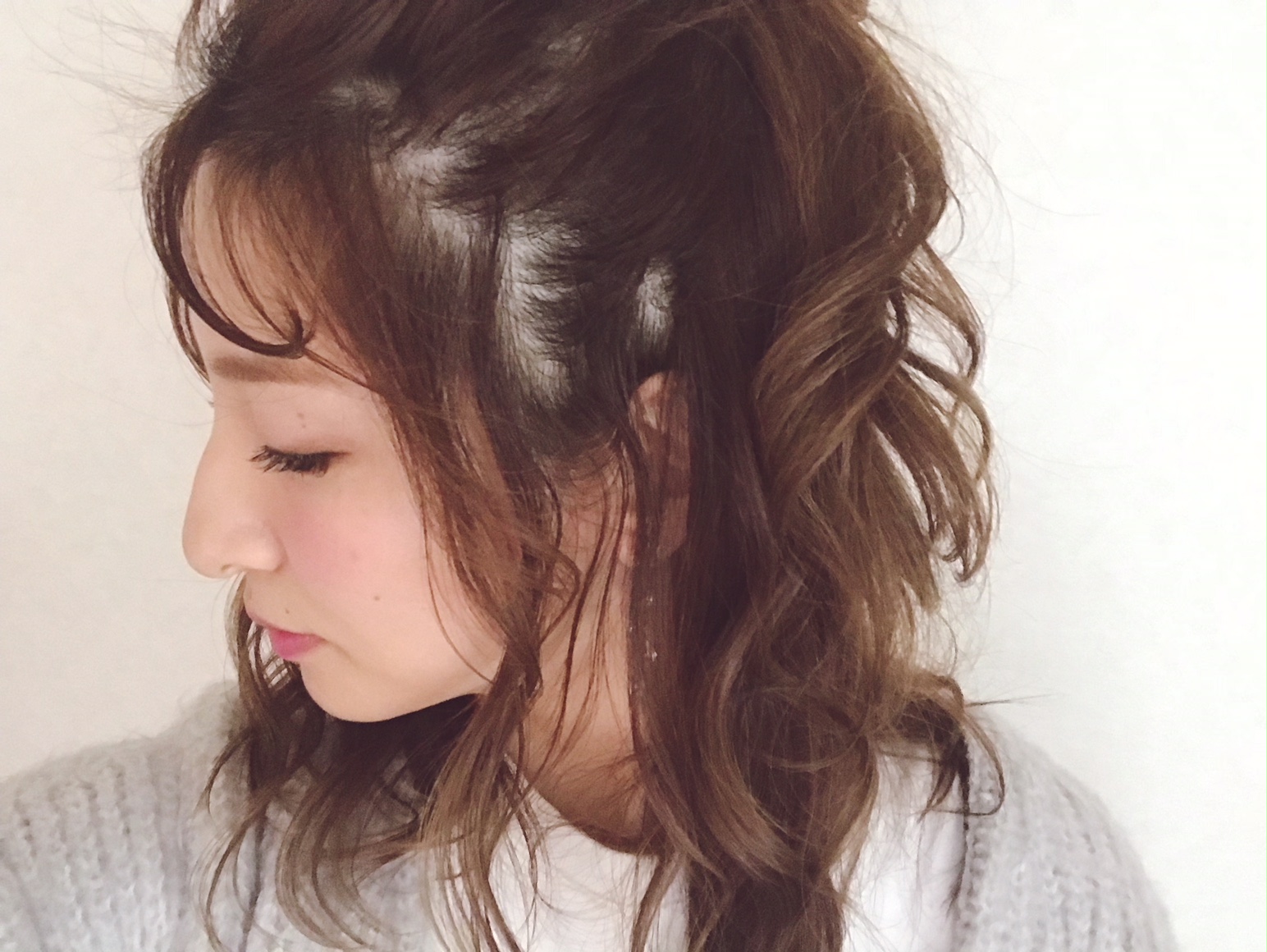 ちょろっと出る前髪で小顔効果があるアレンジです。ではプロセスへ→