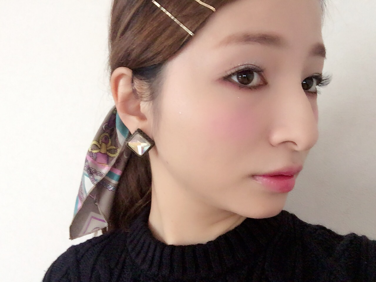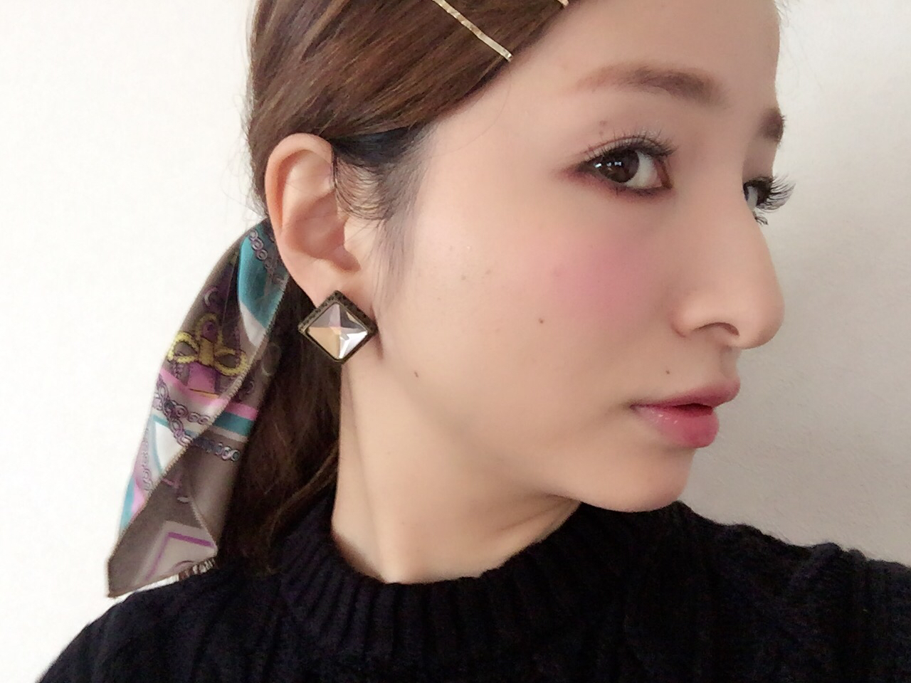 この日はヘアアクセサリーにスカーフをしたくて、洋服はシンプル。
