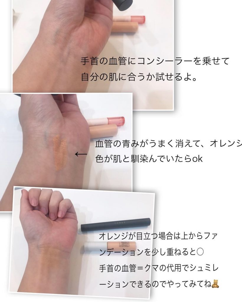 メイクした状態でクマ用コンシーラーのお試しって難しいですよね。手首なら簡単にお試しできますので是非一度試してみてくださいね🌟