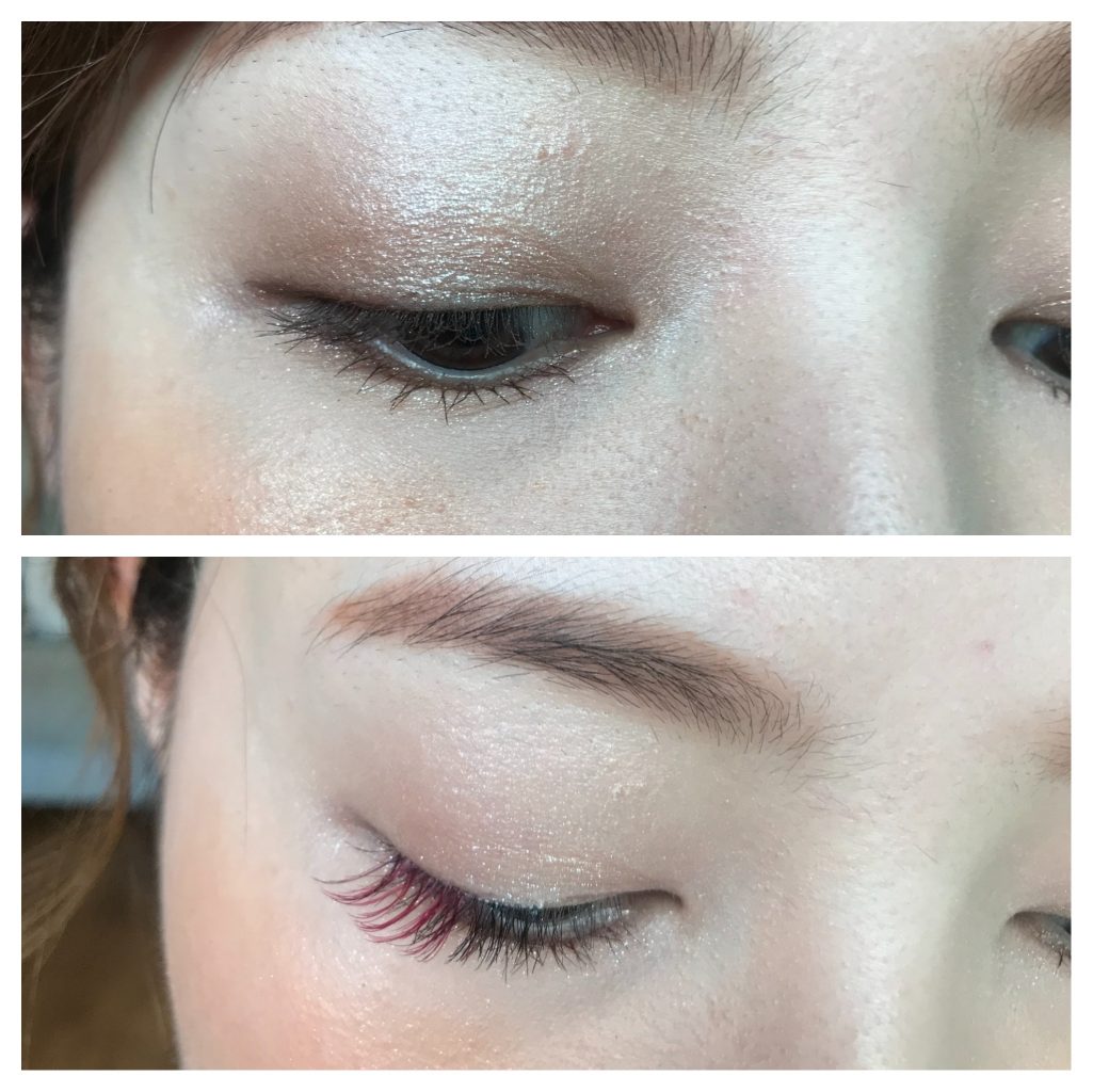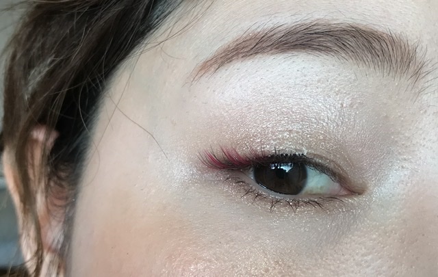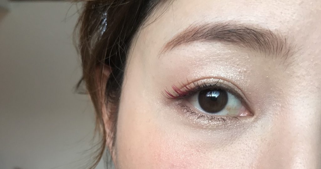 因みに、つけまつげの時はアイシャドウとラインは事前にしておきます。私は自まつ毛が極薄なのでマスカラも少し。そこから装着すると….↓