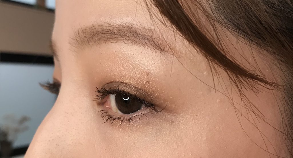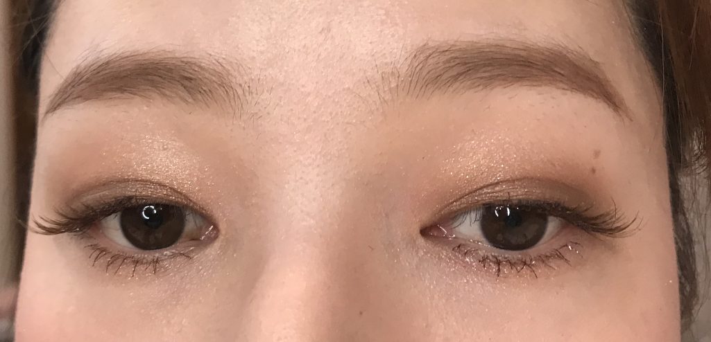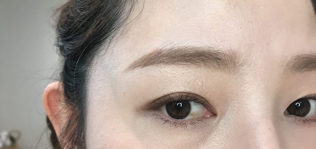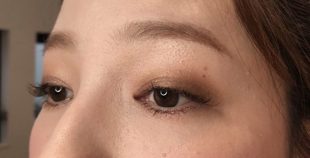 特にこの二重の上ラインをしっかりぼかしてあげるとアイメイクは自然に見えますよ。