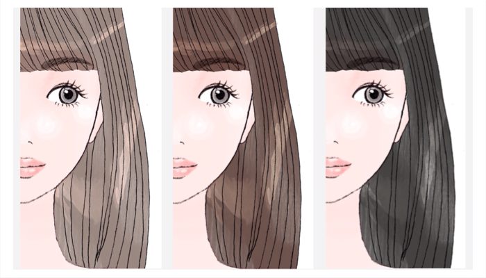 基本的には髪色より1〜2トーンくらい明るめを選ぶと描いた時に違和感なく仕上がる。
