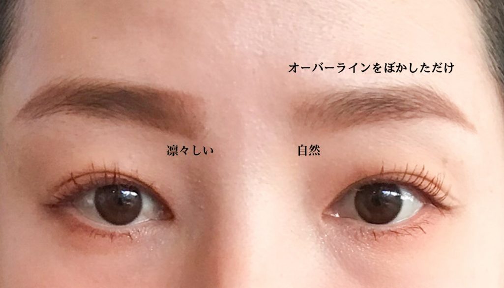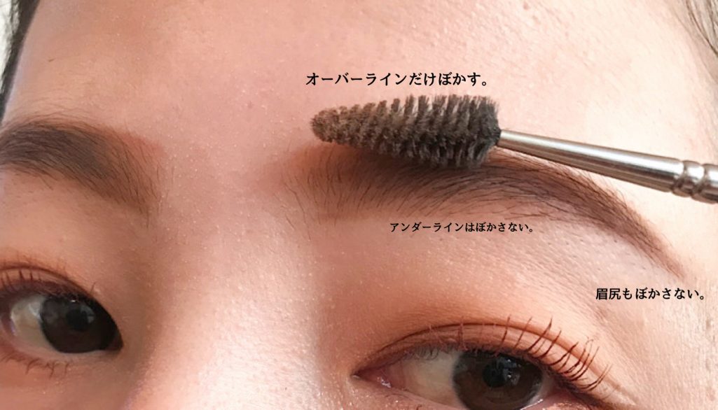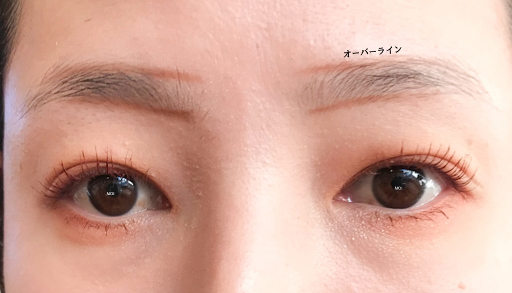 オーバーラインも眉の真ん中くらいまで引いておきましょう。(眉山より手前で止めておく)