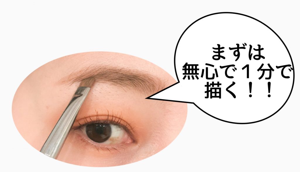 まずはとにかく無心で1分以内に眉を描くことから始めましょう。このときは、眉の正しい形とかは意識しなくてOK!