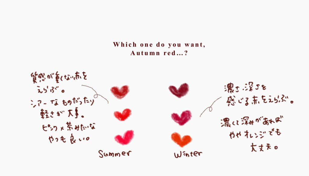 オータムカラーが苦手と感じているブルベさんはとにもかくにも赤!