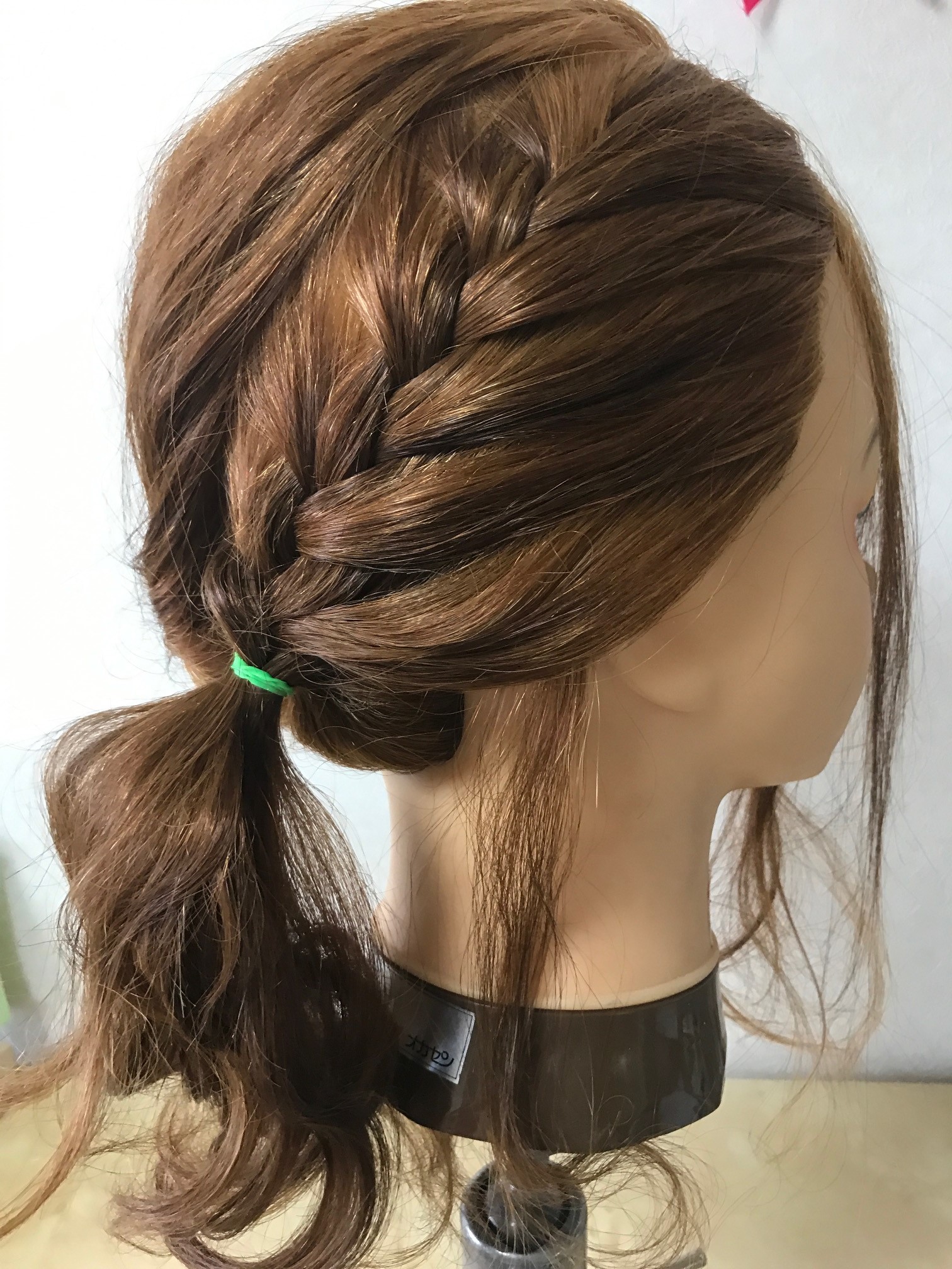 ④ 右側のパートは編みこみなんかを入れてオシャレに
