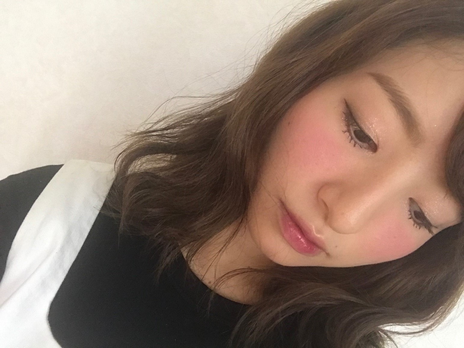 リキッドで丁寧に入れたアイラインは、下を向いた際の目元の印象が特に綺麗に見えますね。